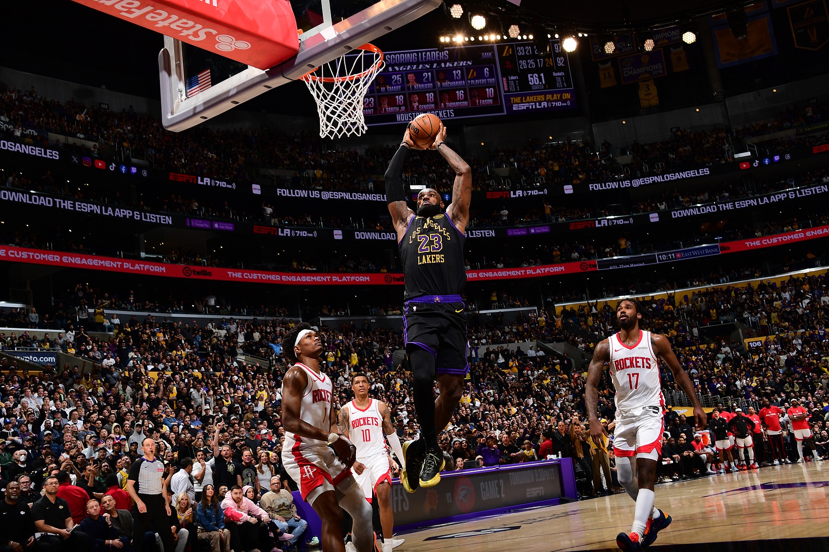 - 41岁詹姆斯28+8+7率湖人2-0火箭,包夹未至球已到弱侧